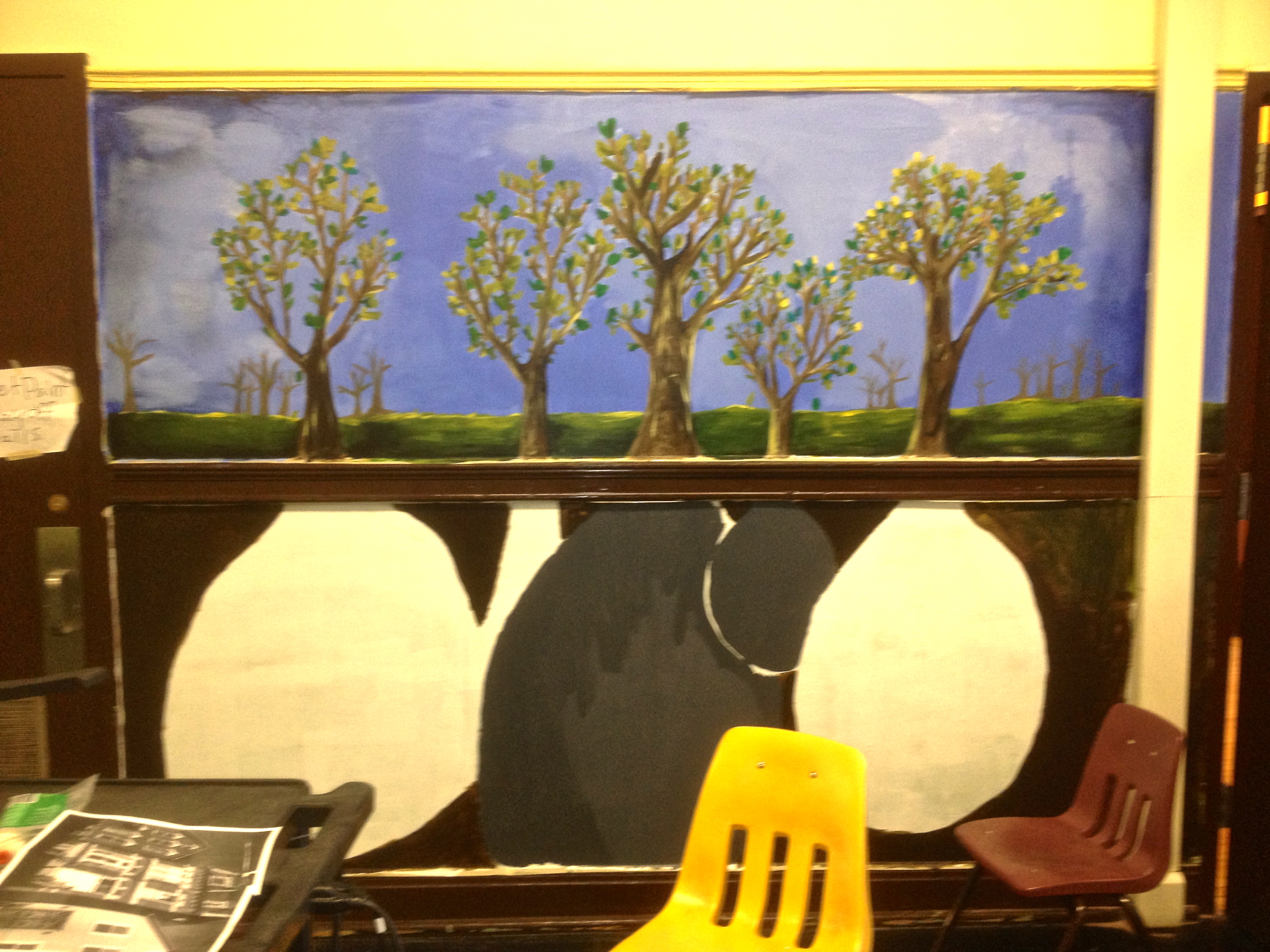 Sketching the community mural “Growing Great Leaders”. The topic is how our school has played a role in the community for over a hundred years and is rooted in history as a school that can help children succeed.